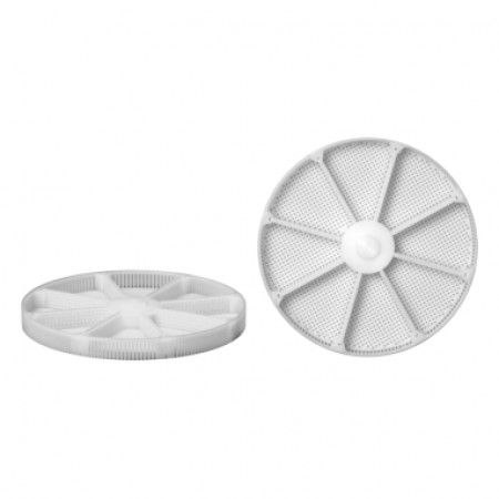 Greiner Plastic basket, dia. 80mm, height 8mm, with 8 separations, mesh dia. 0.64mm