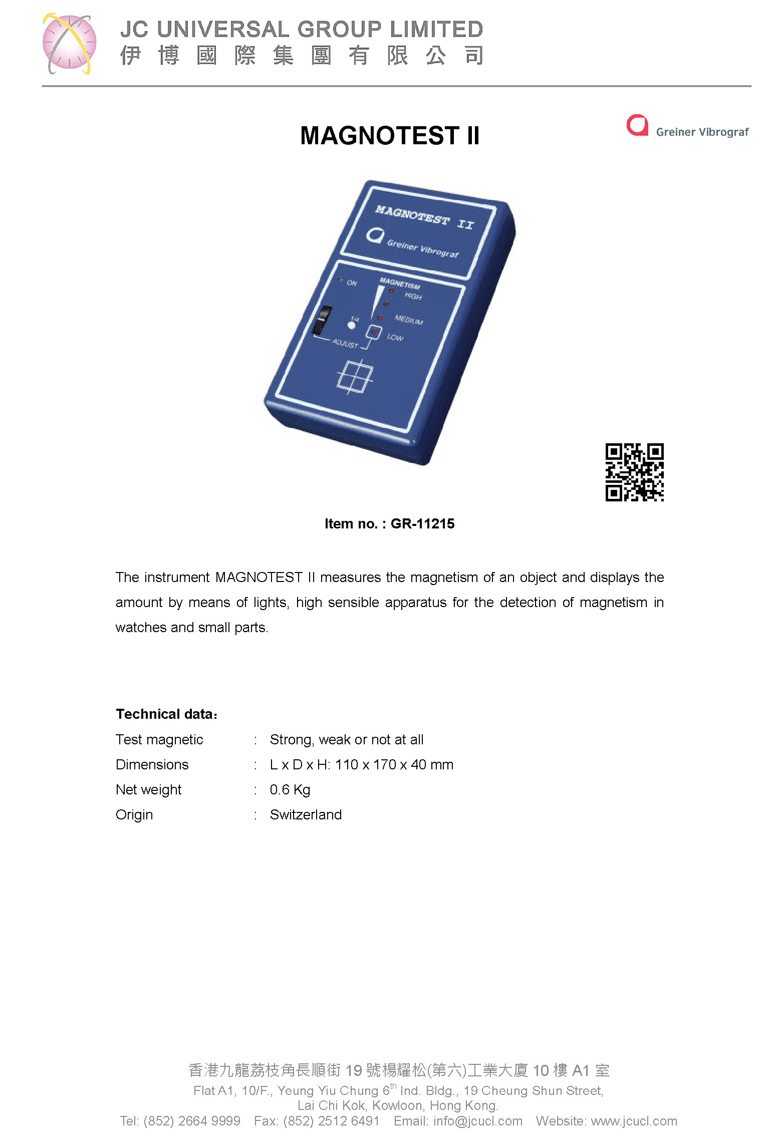 Greiner MAGNOTEST II, apparatus for measuring the magnetism. Using battery for operation, without adaptor.