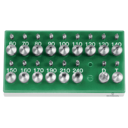 Bergeon Assortment of 15 pump pushers and 15 anvils, with 1 set of pushers for pallet stafts and 1 set of guard pin pushers